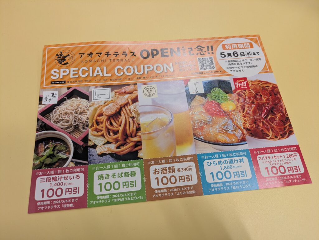 2026年3月27日にオープンした「アオマチテラス」内のよりみち食堂へ行ってきました。